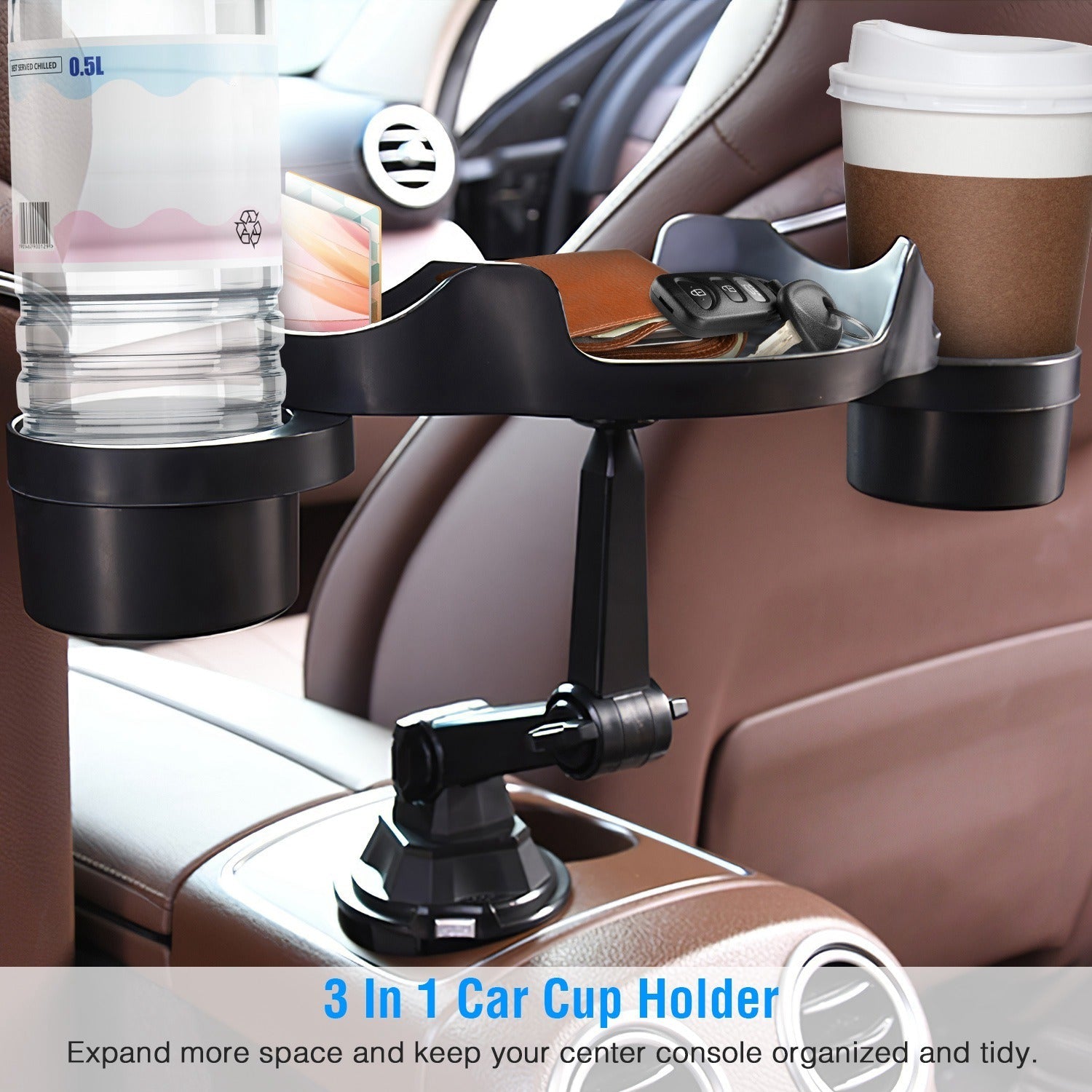 *3-in-1-Auto-Becherhalter*: Ein runder Tablett und zwei Becherhalter sind miteinander kombiniert, um eine vielseitige Nutzung zu ermöglichen; sodass mehr Platz zur Verfügung steht, um Ihre Mittelkonsole ordentlich zu organisieren.